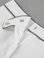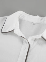 Black and White Contrast Cotton and Linen Shirt and Shorts Two-piece Set