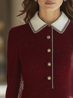 Our classic dress adds a touch of vintage charm to your wardrobe. This stylish coat features a suave round neckline and a stylish and sophisticated color blocking design, perfect for elegant women.