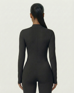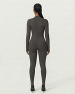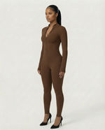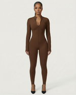 Sleek, sculpting, and made to hug every curve. This Luvina jumpsuit features a contoured, body-molding fit with precision seam detailing that enhances your natural shape. Designed with a sleek zip-front neckline and long sleeves, it delivers a clean, powerful silhouette with a smooth, second-skin feel.