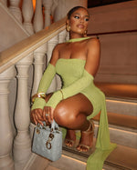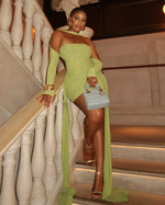 Introducing Anne, a strapless mini dress designed with precision ruching to accentuate every curve. Featuring dramatic floor-length drapes flowing from each hip and sleek thumb-hole sleeves seamlessly attached at the neckline, this piece blends structure with fluidity.