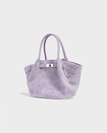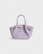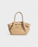 The perfect balance of structure and ease, this suede tote is a versatile essential. Designed with dual top handles and an adjustable long strap, it transitions seamlessly from shoulder carry to crossbody. A sleek metal clasp detail adds a touch of polish to its roomy silhouette.