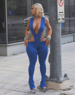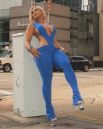 NERI Plunge V Cutout Bodysuit & Flare Pants Set