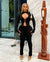 A bold two-piece that brings sleek tailoring with an edge. The top features daring front cutouts with a clasp closure design, while the fitted pants balance the look with a zip front accent. Crafted from stretch fabric, this set sculpts the body while keeping it effortlessly chic.